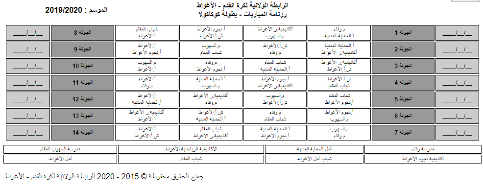 ملاحظة : كل المباريات ستجرى في نفس الملعب.