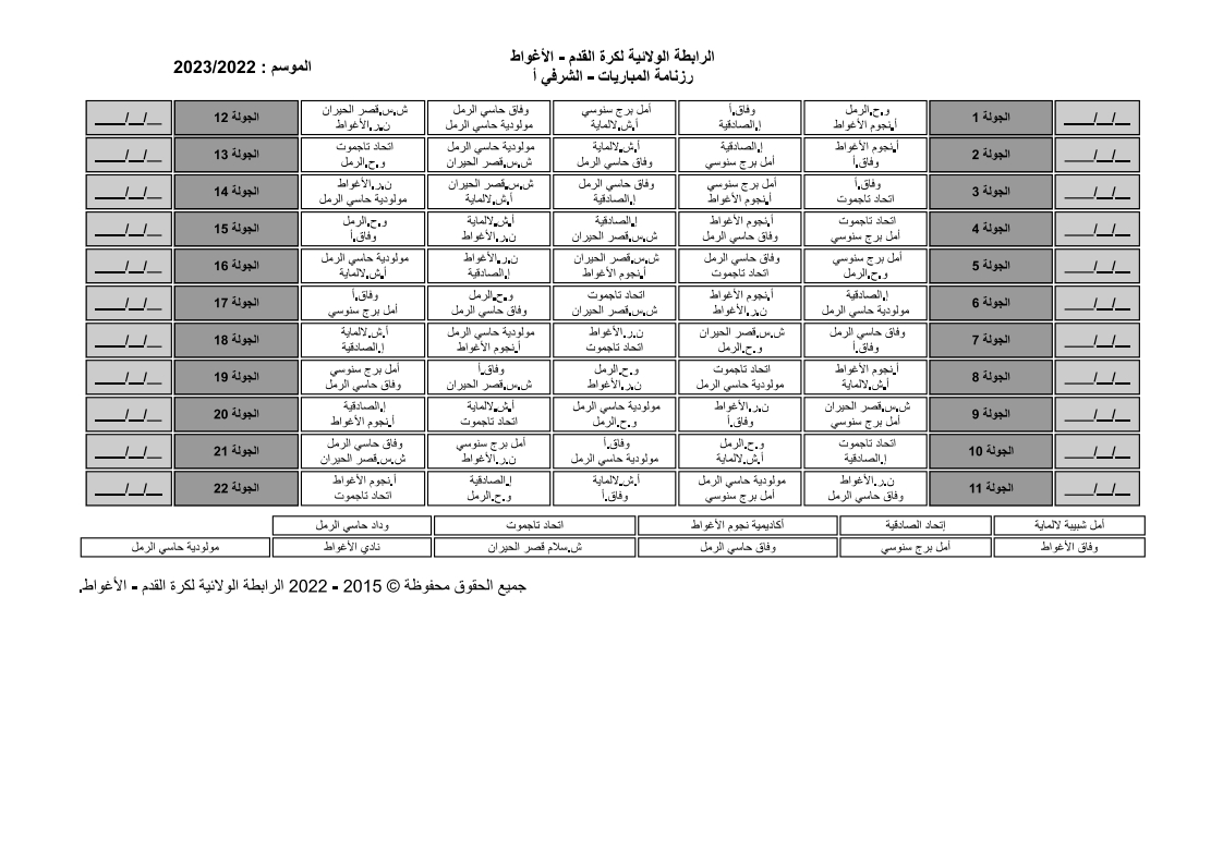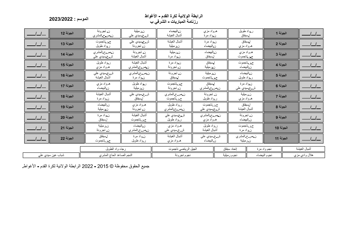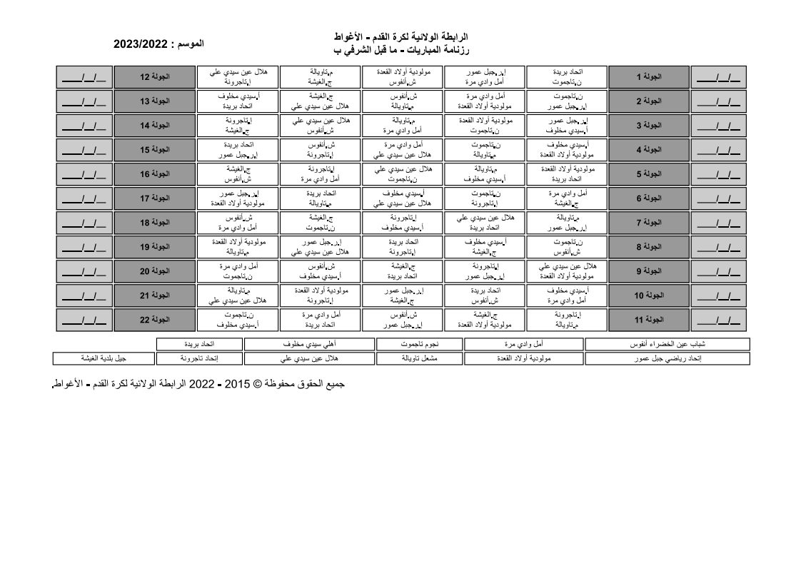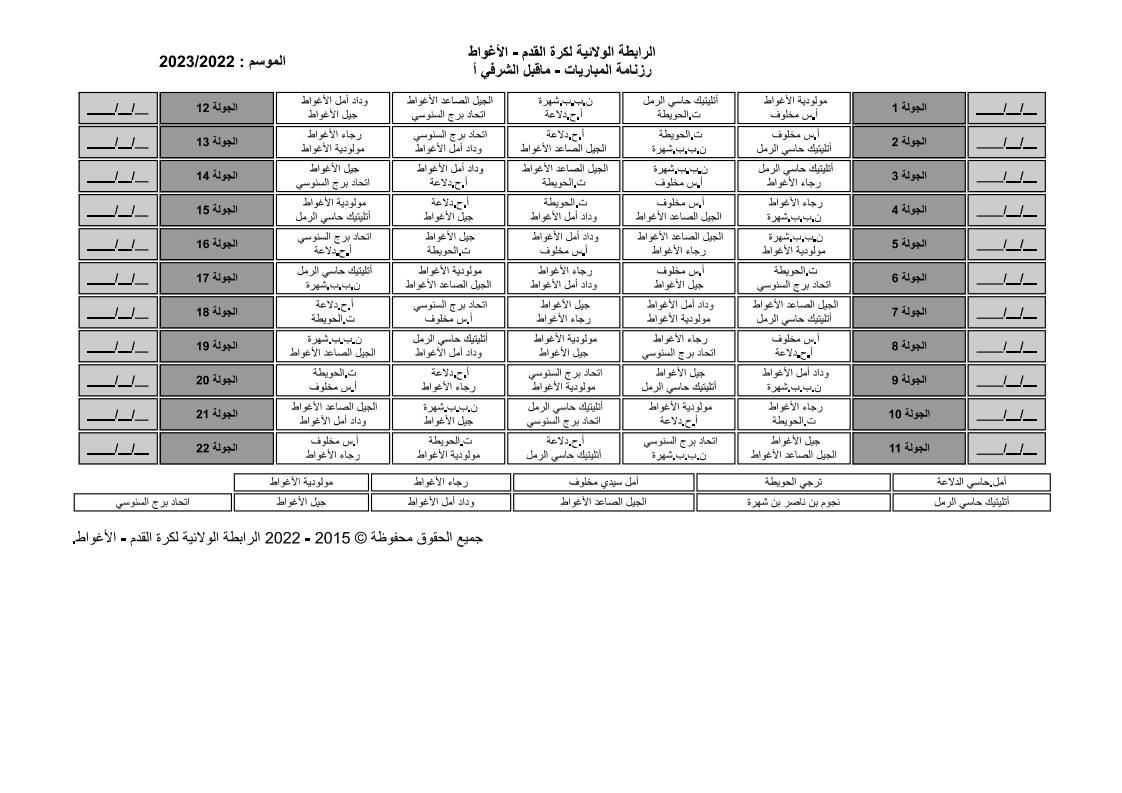 بمقر الرابطة ترأس اللسيد أحمد خرشي اجتماعاً تنسيقيا لإجراء عملية القرعة لبطولة القسمين الشرفي وما قبل الشرفي بحضور رؤساء النوادي والتي أسفرت نتائج القرعة عن مايلي :