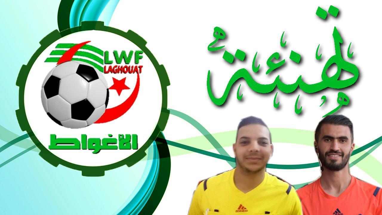 مناسبة نجاح كل من الحكمين عمرحسني (حكم ساحة) ورياض غزلان (حكم مساعد) في الامتحان الكتابي فدرالي وما بين الرابطات على التوالي يتتقدم أعضاء مكتب الرابطة الولائية لكرة القدم وعلى رأسهم رئيس الرابطة السيد "جنيدي حبيب" لهما باحرالتهاني القلبية وهذا بعد الجد والنجاح لابد ان ننال ماكنا نسعى اليه ضمن اهدافنا الا وهو تكوين الحكام الشباب وللاشارة ان نسبة النجاح بالنسبة لرابطة الاغواط 2 من 2 يعني 100% وعليه يصبح لدينا 4 حكام فدراليين و 20 حكما مابين الرابطات.
