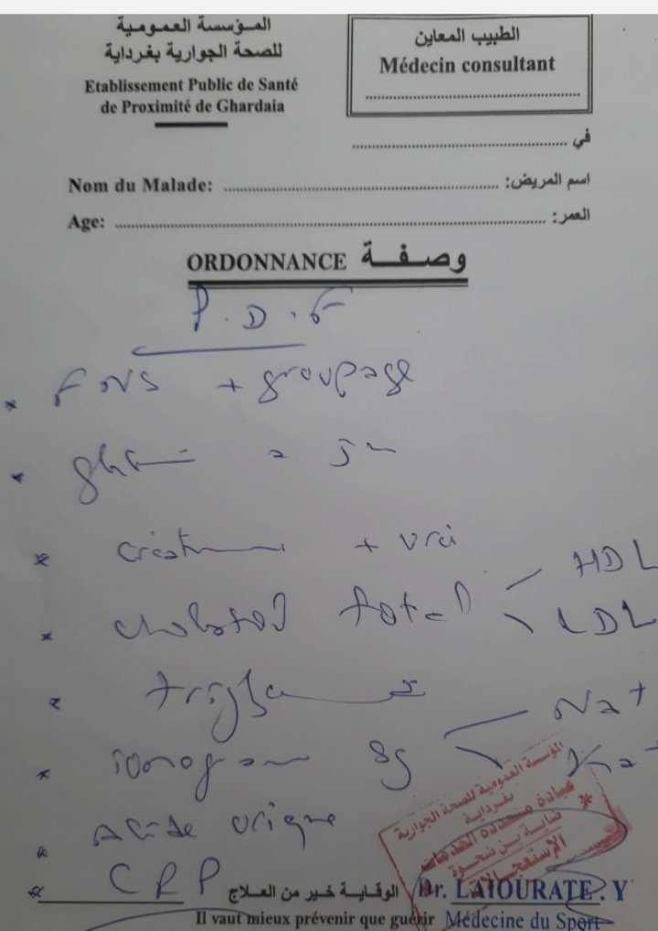 - التحاليل الطبية المطلوبة في الورقة الطبية بالأسفل