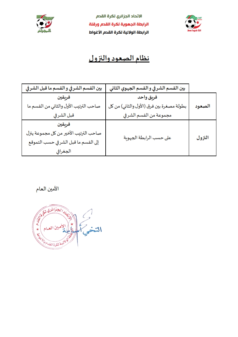 وفقا لاجتماع مكتب الرابطة المنعقد يوم 2023/10/19 تم تحديد نظام الصعود والنزول كما يلي :