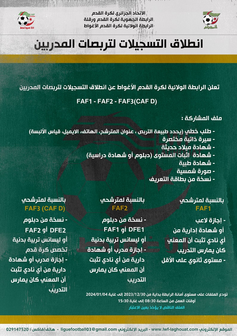 تعلن المديرية الفنية عن انطلاق تربصات المدربين