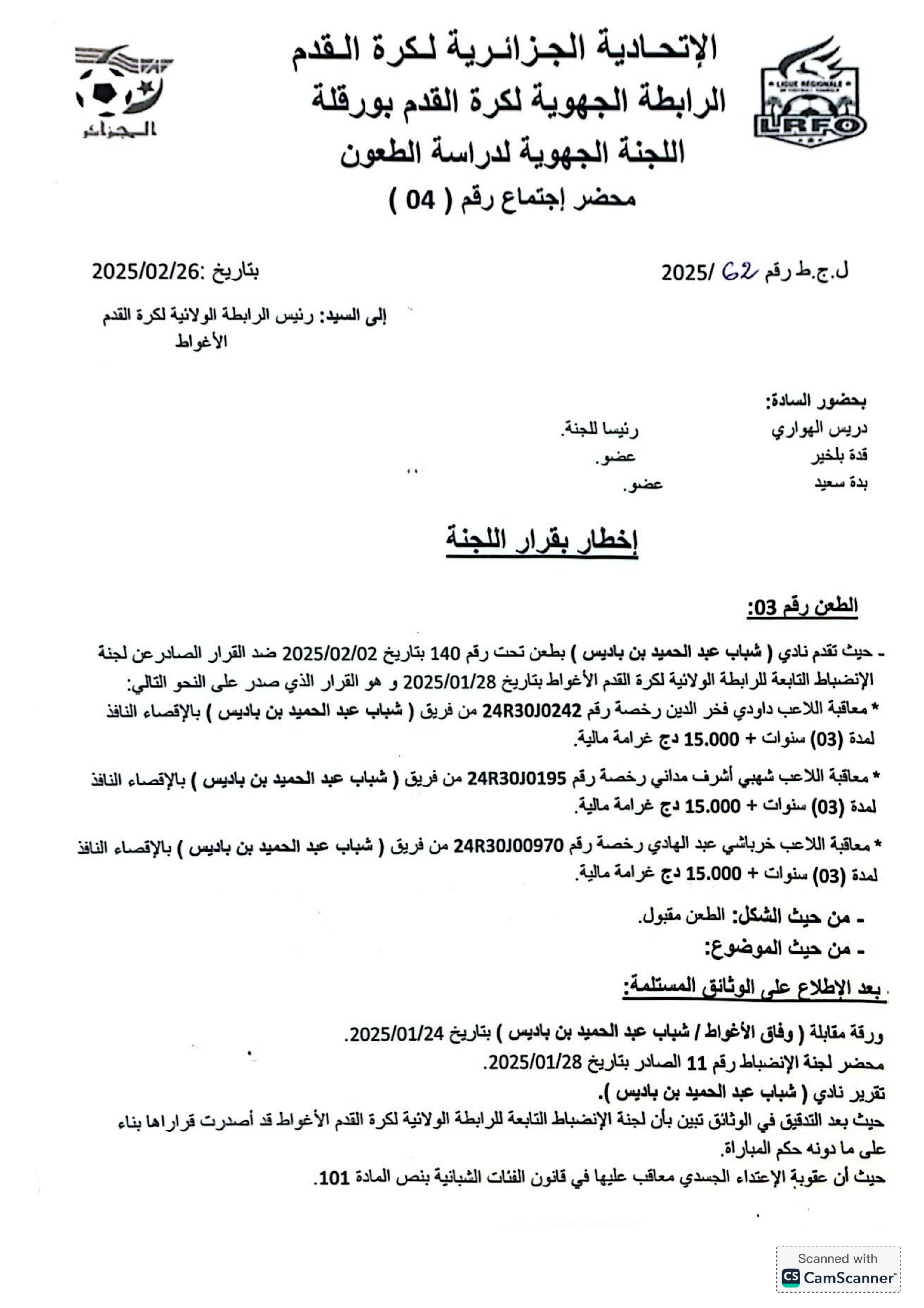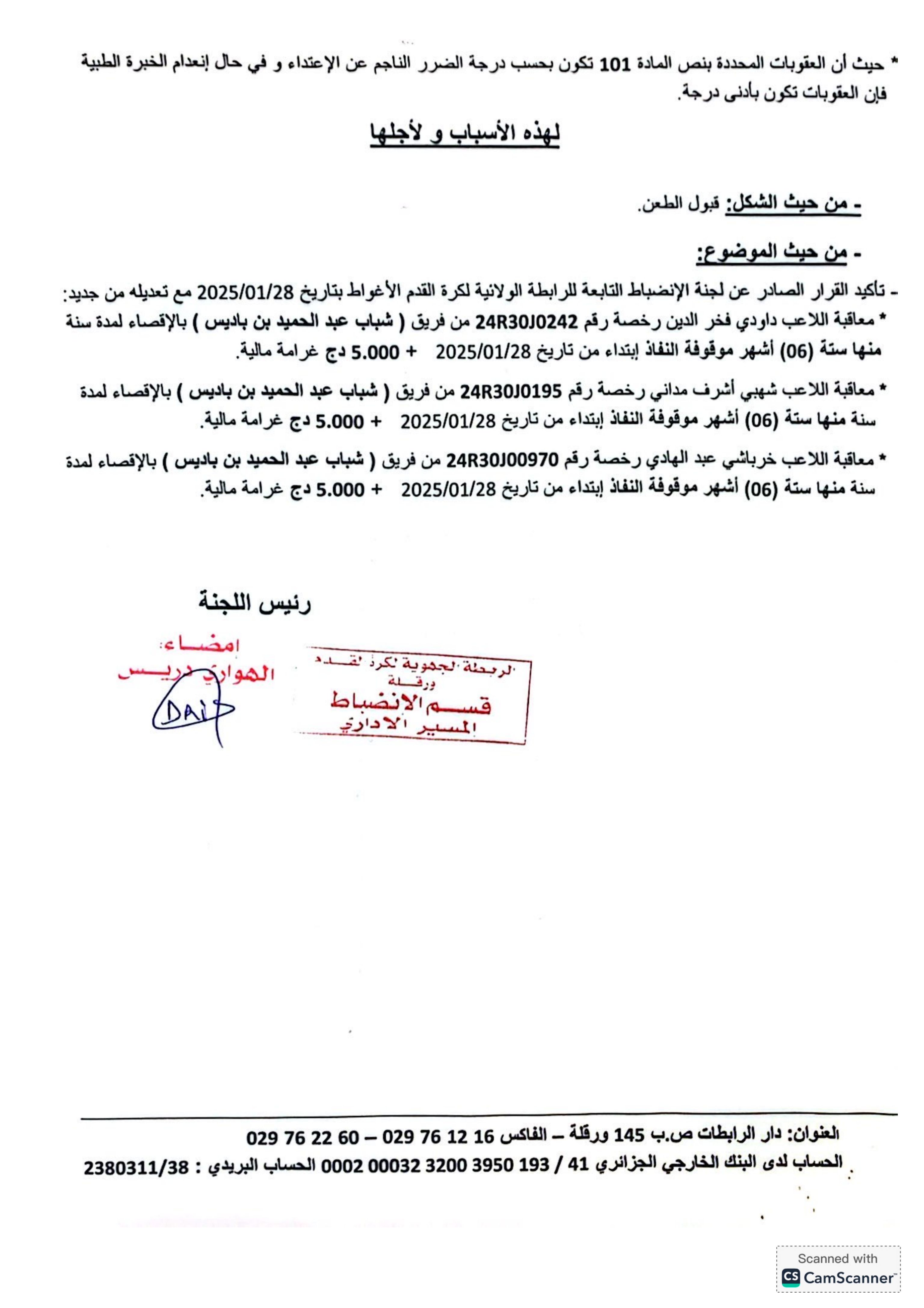 | قرار لجنة الطعن نادي شباب بن باديس |
